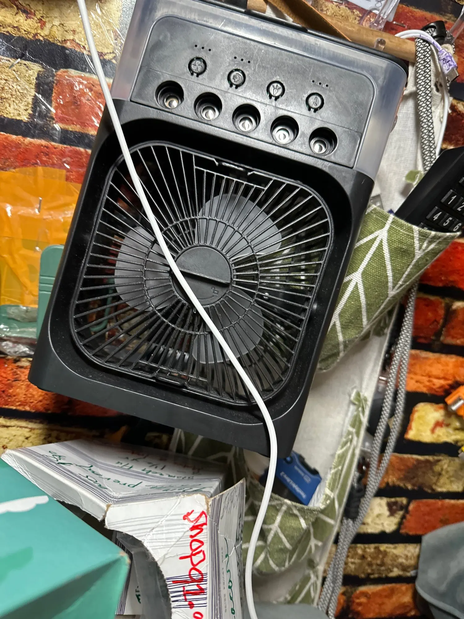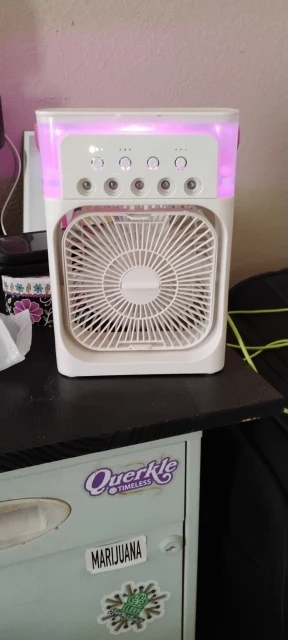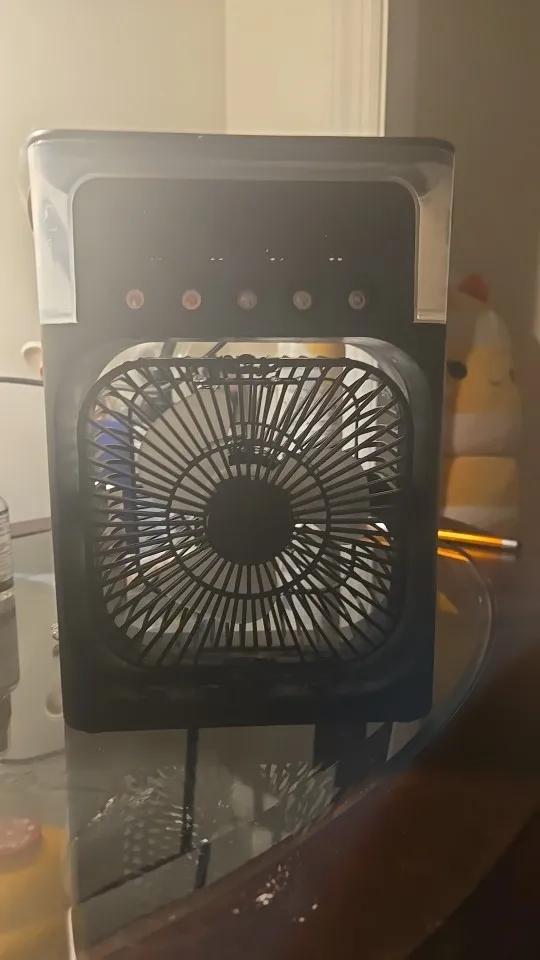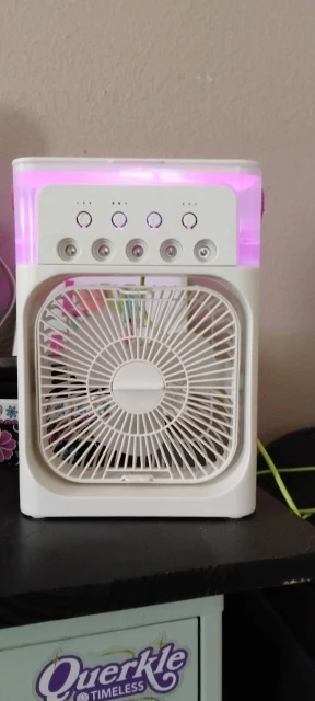 So I have this little number hanging just next to my bed on the wall where I sleep and it's good because I have asthma. I can't stand a lot of air and night but get so hot. I needed something and this one fits perfectly. It has several different speeds where you can manage the airflow and it also lights up so you don't have to fumble around for it and as well, it has a handle we can hang it up like I've done. Perfect for me because it doesn't make me cough with the heavy airflow because I can regulate the speed to light medium low high and even at its highest level it's not too big of thrust, but it gives you the air circulation that you need so that you're very comfortable.